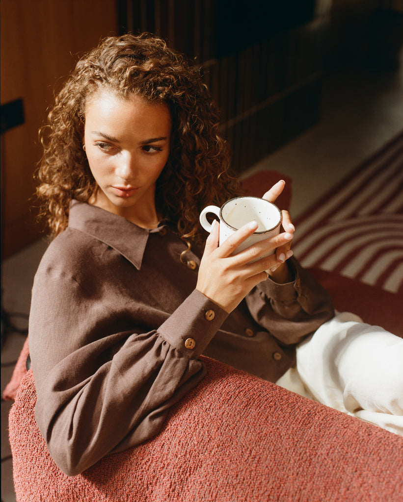 Crafted from the iconic Belgian Master of Linen®, in a rich earthy brown tone, it is perfect to be worn alone or layered.