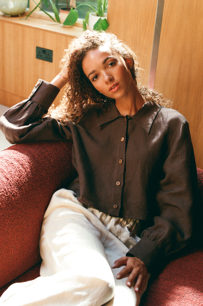 Freya Linen Cropped Blouse - Chocolate - Delivery from the end of October
