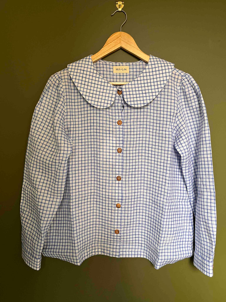 Claudine Linen Blouse - Royal Blue Gingham - Pre-order on demand